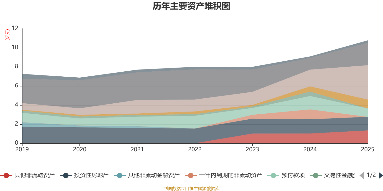 资产重大变化方面,截至2025年末,公司应收票据及应收账款较上年末增加104.36%,占公司总资产比重上升14.01个百分点;一年内到期的非流动资产较上年末减少100%,占公司总资产比重下降11.44个百分点;货币资金较上年末增加91.79%,占公司总资产比重上升8.35个百分点;预付款项较上年末减少37.43%,占公司总资产比重下降7.27个百分点。