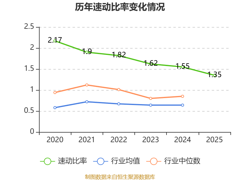 2025年,公司流动比率为1.35,速动比率为1.35。