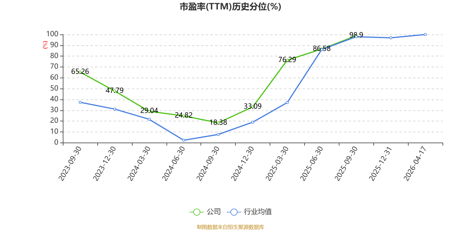 市盈率、市净率为负时,不显示当期分位数,会导致折线图中断。