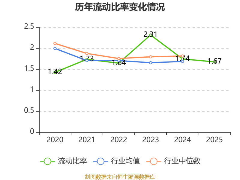 2025年,公司流动比率为1.67,速动比率为1.14。