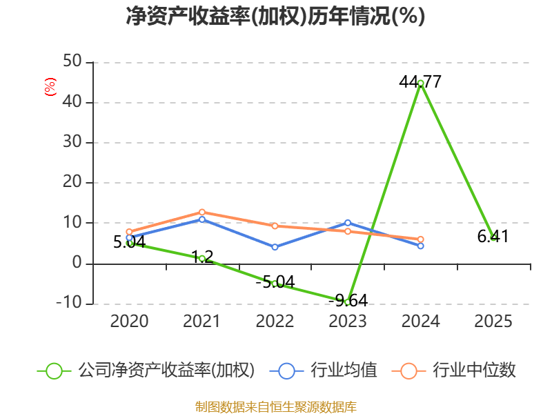 数据显示,2025年公司加权平均净资产收益率为6.41%,较上年同期下降38.36个百分点。公司2025年投入资本回报率为10.39%,较上年同期下降21.72个百分点。