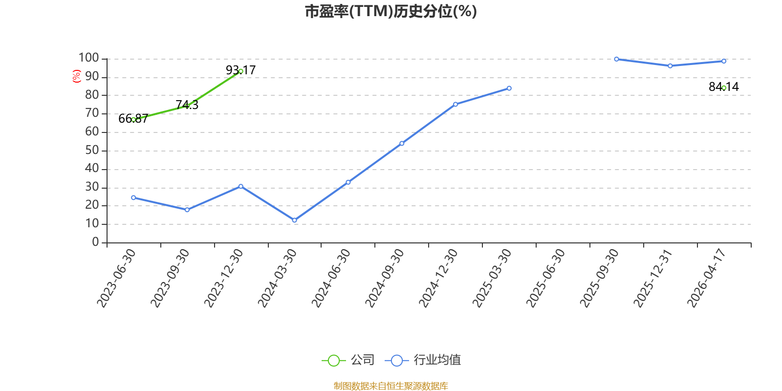 市盈率、市净率为负时,不显示当期分位数,会导致折线图中断。