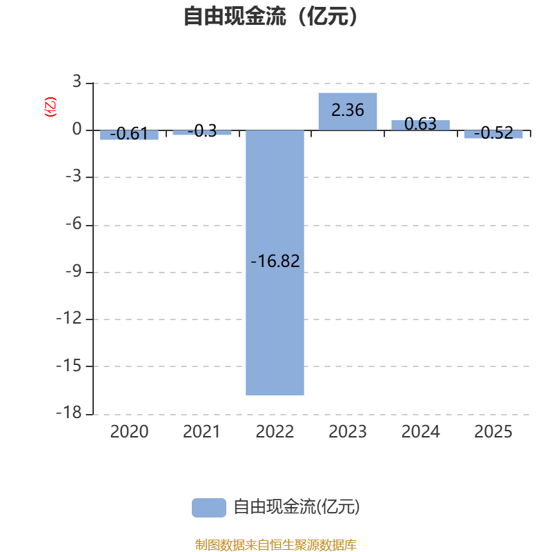 截至2025年,公司经营活动现金流净额为2170.07万元,同比增加8784.64万元;筹资活动现金流净额1304.25万元,同比减少1826.67万元;投资活动现金流净额-4.73亿元,上年同期为-1.41亿元。