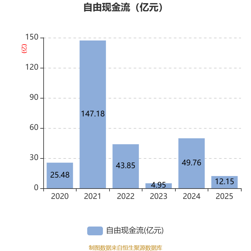 截至2025年,公司经营活动现金流净额为25.71亿元,同比增长8.15%;筹资活动现金流净额-47.93亿元,同比减少89.9亿元;投资活动现金流净额-18.2亿元,上年同期为-20.7亿元。