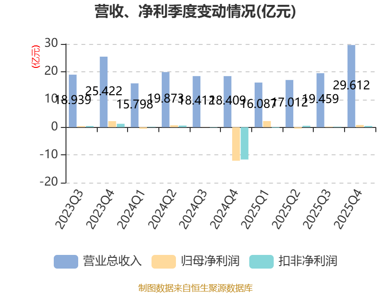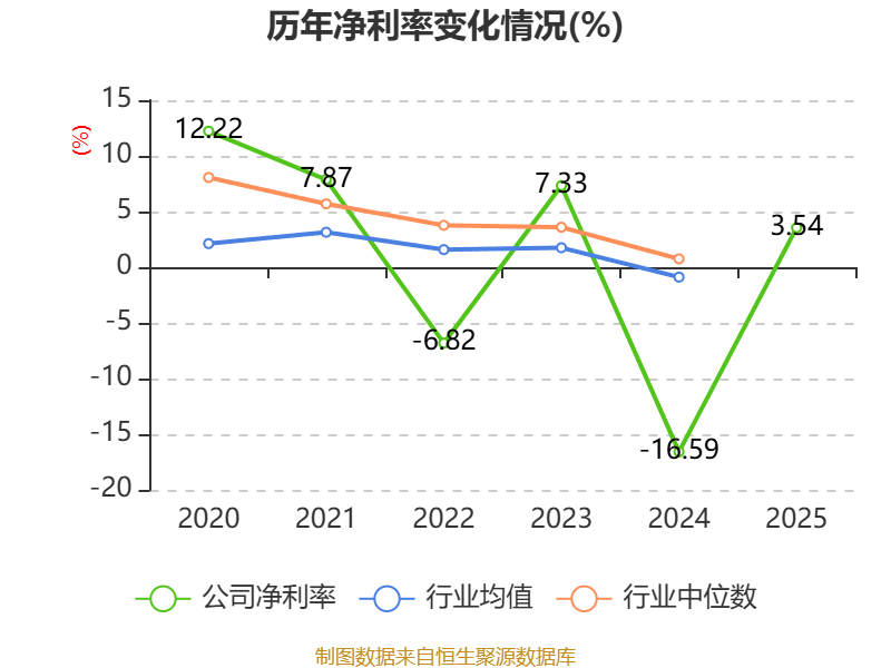 从存货变动来看,截至2025年末,公司存货账面价值为19.14亿元,占净资产的16.61%,较上年末减少5.55亿元。其中,存货跌价准备为6353.99万元,计提比例为3.21%。