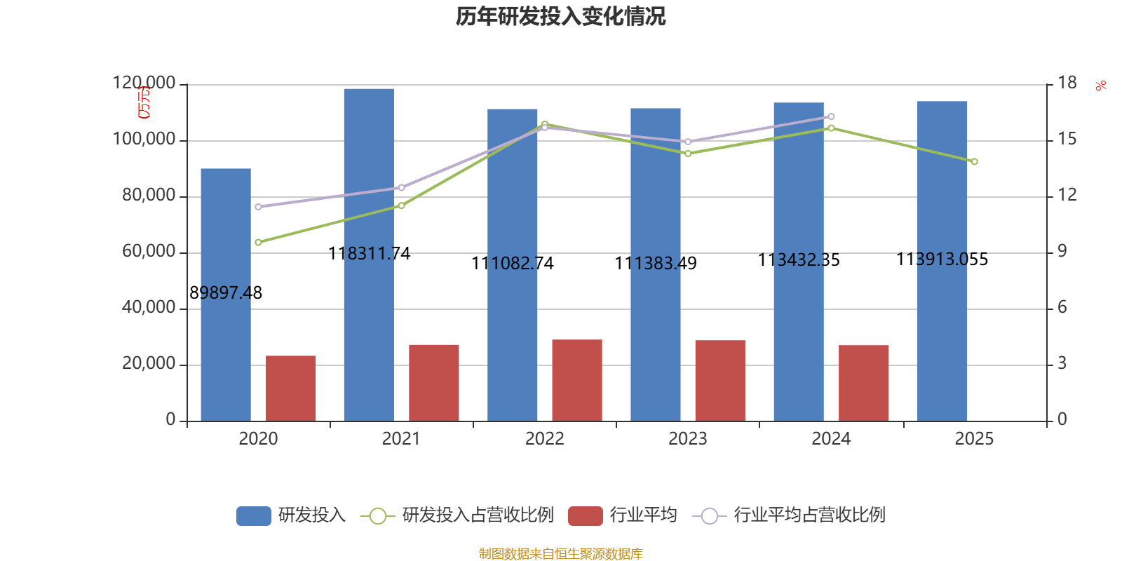 2025年全年,公司研发投入金额为11.39亿元,同比增长0.42%;研发投入占营业收入比例为13.86%,相比上年同期下降1.79个百分点。此外,公司全年研发投入资本化率为4.53%。