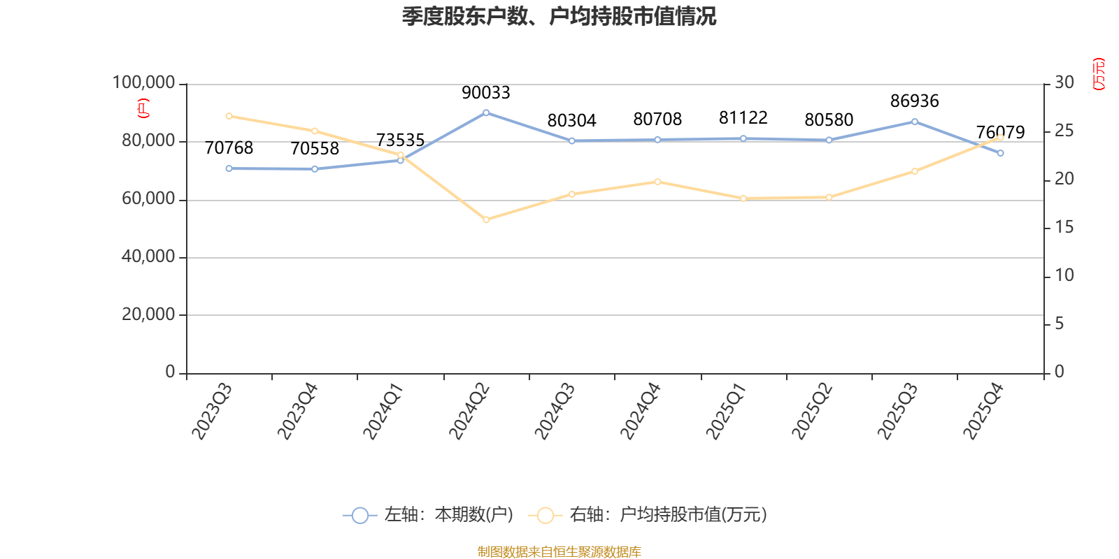 资产重大变化方面,截至2025年末,公司交易性金融资产合计较上年末增加116.73%,占公司总资产比重上升4.49个百分点;存货较上年末减少22.48%,占公司总资产比重下降2.79个百分点;货币资金较上年末减少11.46%,占公司总资产比重下降1.95个百分点;应收票据及应收账款较上年末增加3.51%,占公司总资产比重上升1.14个百分点。