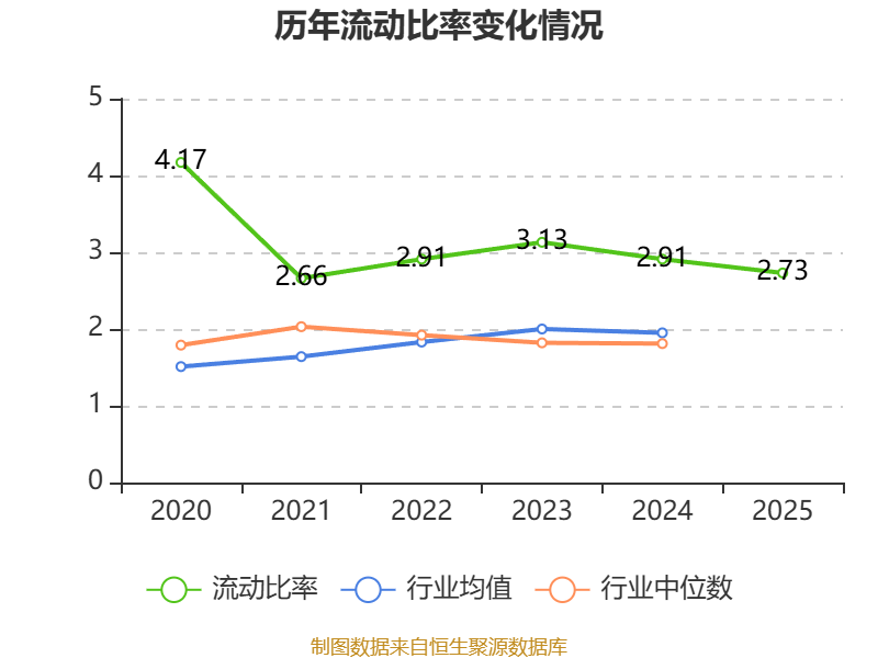 2025年,公司流动比率为2.73,速动比率为1.34。