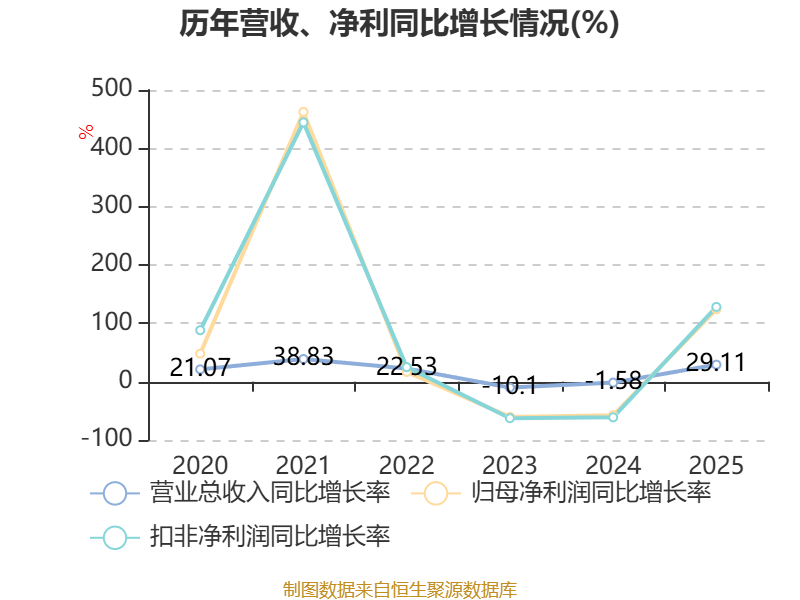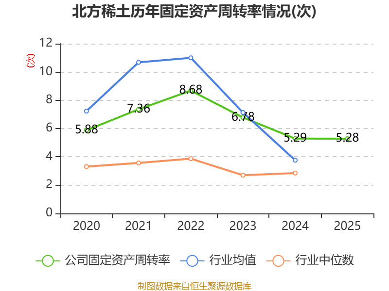 中证智能财讯北方稀土(600111)4月18日披露2025年年度报告。2025年,公司实现营业总收入425.63亿元,同比增长29.11%;归母净利润22.51亿元,同比增长124.17%;扣非净利润20.56亿元,同比增长128.10%;经营活动产生的现金流量净额为11.15亿元,同比增长8.71%;报告期内,北方稀土基本每股收益为0.6227元,加权平均净资产收益率为9.56%。公司2025年度分配预案为:拟向全体股东每10股派现1.3元(含税)。