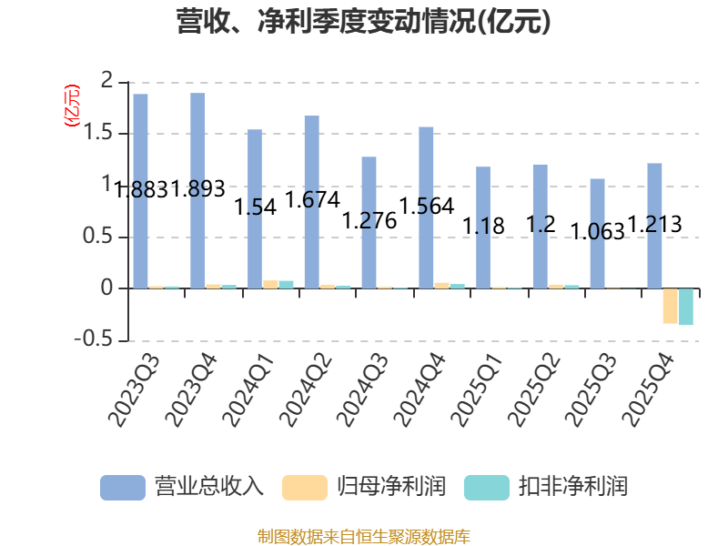 中证智能财讯建新股份(300107)4月18日披露2025年年度报告。2025年,公司实现营业总收入4.65亿元,同比下降23.12%;归母净利润亏损2774.21万元,上年同期盈利1936.57万元;扣非净利润亏损3019.68万元,上年同期盈利1625.88万元;经营活动产生的现金流量净额为5230.63万元,同比增长18.38%;报告期内,建新股份基本每股收益为-0.0493元,加权平均净资产收益率为-1.87%。