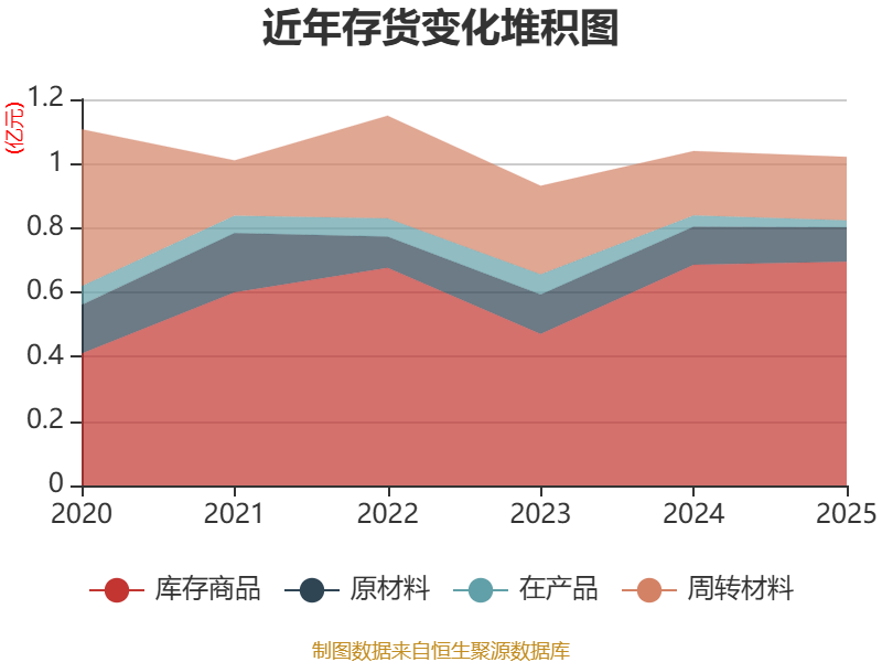 从存货变动来看,截至2025年末,公司存货账面价值为1.02亿元,占净资产的6.95%,较上年末减少166.28万元。其中,存货跌价准备为198.42万元,计提比例为1.9%。