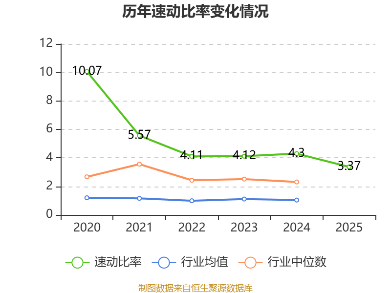 2025年,公司流动比率为4.15,速动比率为3.37。