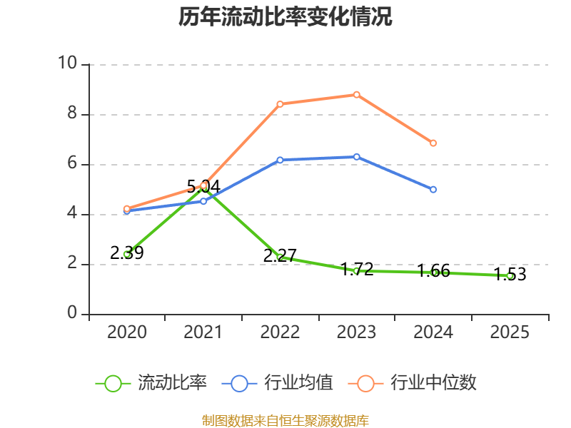 2025年,公司流动比率为1.53,速动比率为1.17。