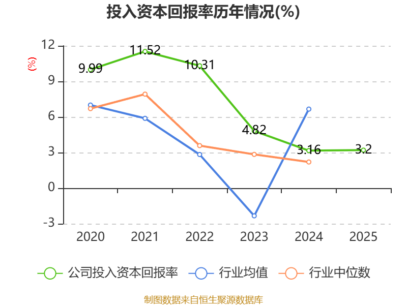 数据显示,2025年公司加权平均净资产收益率为3.9%,较上年同期上升0.26个百分点。公司2025年投入资本回报率为3.2%,较上年同期上升0.04个百分点。