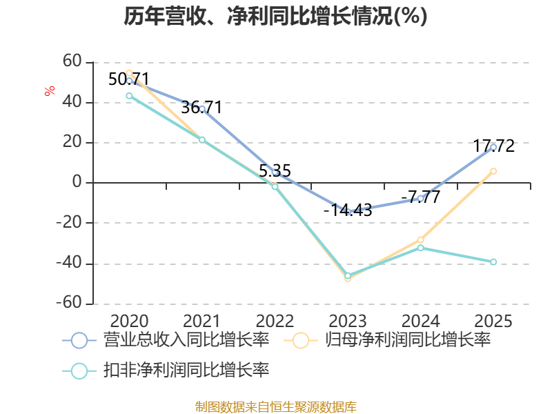 资产重大变化方面,截至2025年末,公司在建工程合计较上年末减少50.56%,占公司总资产比重下降14.81个百分点;固定资产较上年末增加73.32%,占公司总资产比重上升13.3个百分点;应收票据及应收账款较上年末增加51.79%,占公司总资产比重上升1.99个百分点;交易性金融资产合计较上年末减少0.15%,占公司总资产比重下降1.48个百分点。