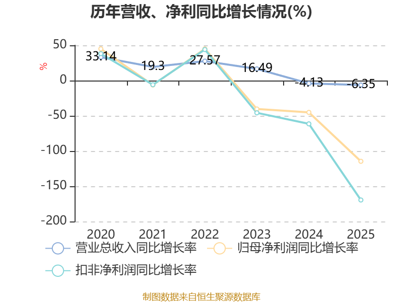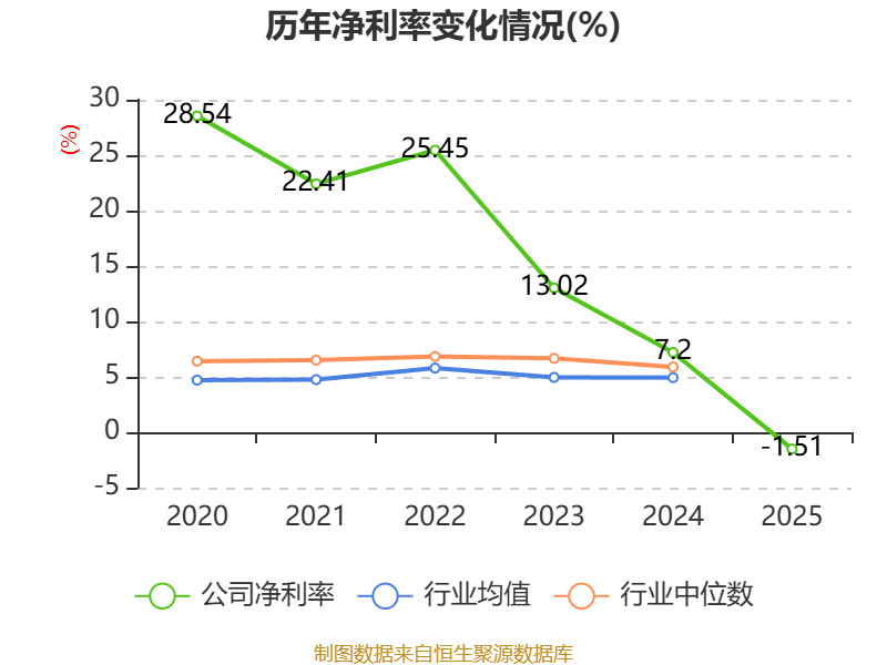 数据显示,2025年公司加权平均净资产收益率为-0.41%,较上年同期下降3.22个百分点。公司2025年投入资本回报率为-1.06%,较上年同期下降3.11个百分点。