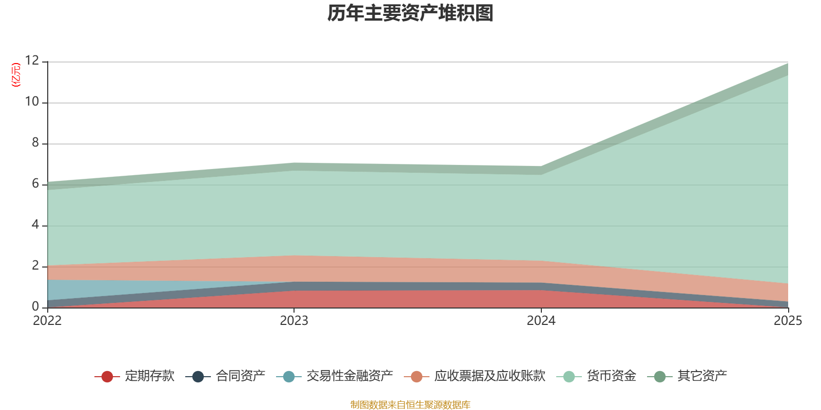资产重大变化方面,截至2025年末,公司货币资金较上期末增加143.03%,占公司总资产比重上升24.58个百分点;定期存款较上期末减少100%,占公司总资产比重下降12.25个百分点;应收票据及应收账款较上期末减少17.91%,占公司总资产比重下降8.18个百分点;合同资产较上期末减少20.99%,占公司总资产比重下降2.88个百分点。