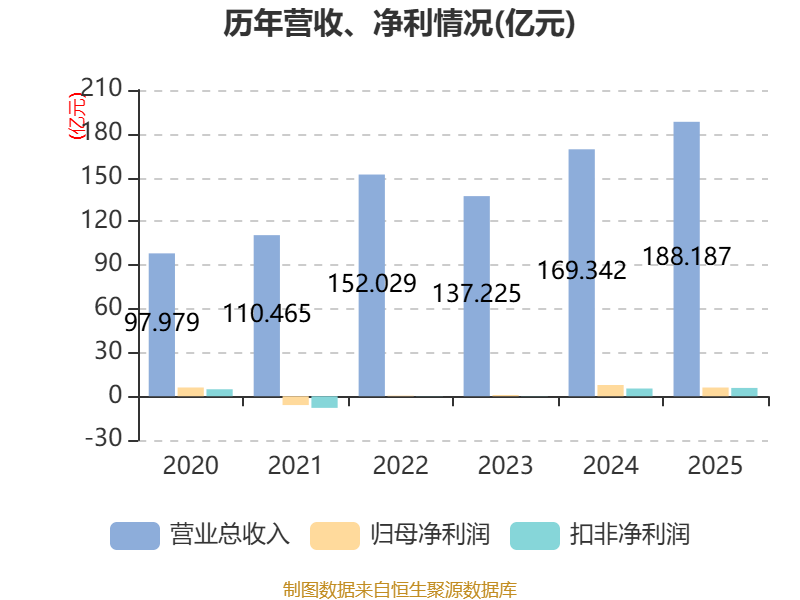 中证智能财讯长盈精密(300115)4月18日披露2025年年度报告。2025年,公司实现营业总收入188.19亿元,同比增长11.13%;归母净利润5.98亿元,同比下降22.53%;扣非净利润5.7亿元,同比增长7.30%;经营活动产生的现金流量净额为5.62亿元,同比下降75.13%;报告期内,长盈精密基本每股收益为0.44元,加权平均净资产收益率为7.31%。公司2025年度分配预案为:拟向全体股东每10股派现1.2元(含税)。