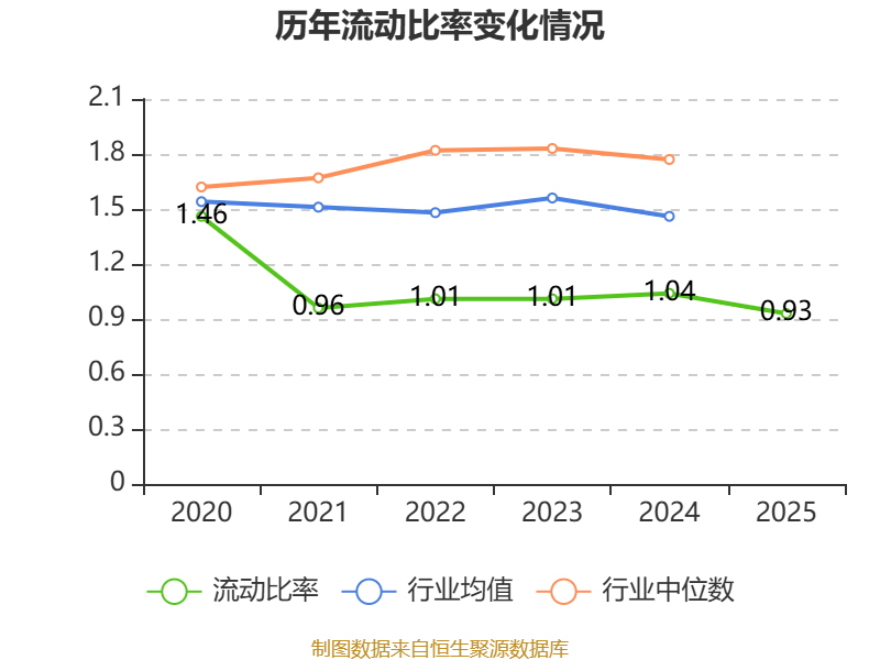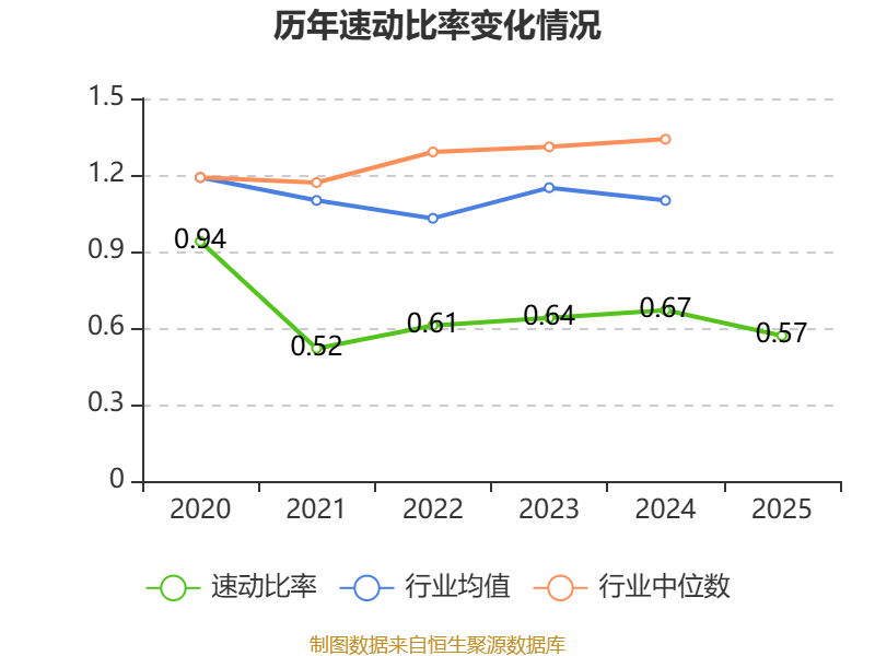 2025年,公司流动比率为0.93,速动比率为0.57。
