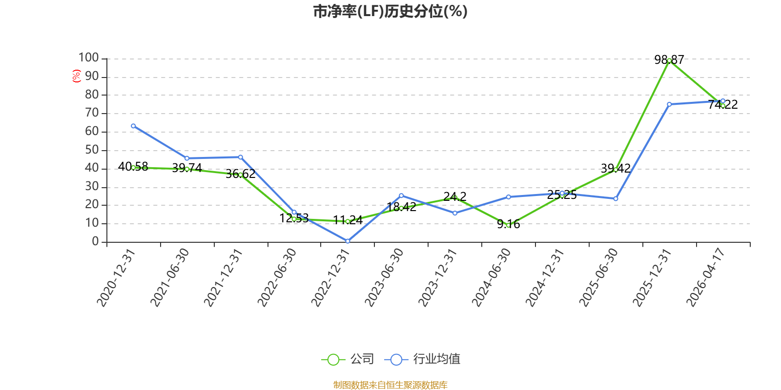 市盈率、市净率为负时,不显示当期分位数,会导致折线图中断。