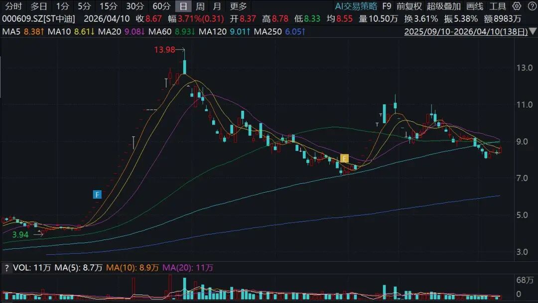 ST中迪主要从事房地产业务,公司近年来的业绩受到了房地产大环境及自身财务费用等因素的影响。2025年度业绩预告显示,公司预计去年实现营收1.8亿元至2.2亿元,亏损2.8亿元至5.6亿元;公司预计期末归属于母公司所有者权益为-1.38亿元至-4.18亿元。以业绩预告观之,公司股票交易可能在2025年年报披露后“披星”。