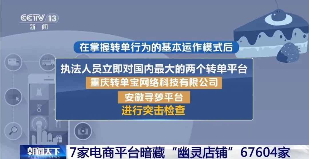 市场监管总局执法稽查局稽查四处娄思涵:一开始我们以为可能只有一家,随着对转单平台穿透式执法的调查,发现不只是一家大型电商平台存在这种情况,几乎所有的头部电商平台都不能幸免,这是一个行业性的纵容,但凡有一家平台去认真审核转单应用,或者去认真审核店铺的资质,都不会出现这样一个大范围的失守。