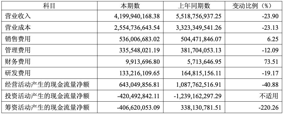 营业成本同比减少主要是调味品板块材料采购单价下降以及销售减少影响;销售费用同比增长主要是人工成本及广告宣传费增加;研发费用同比减少主要是调味品板块研发投入减少。