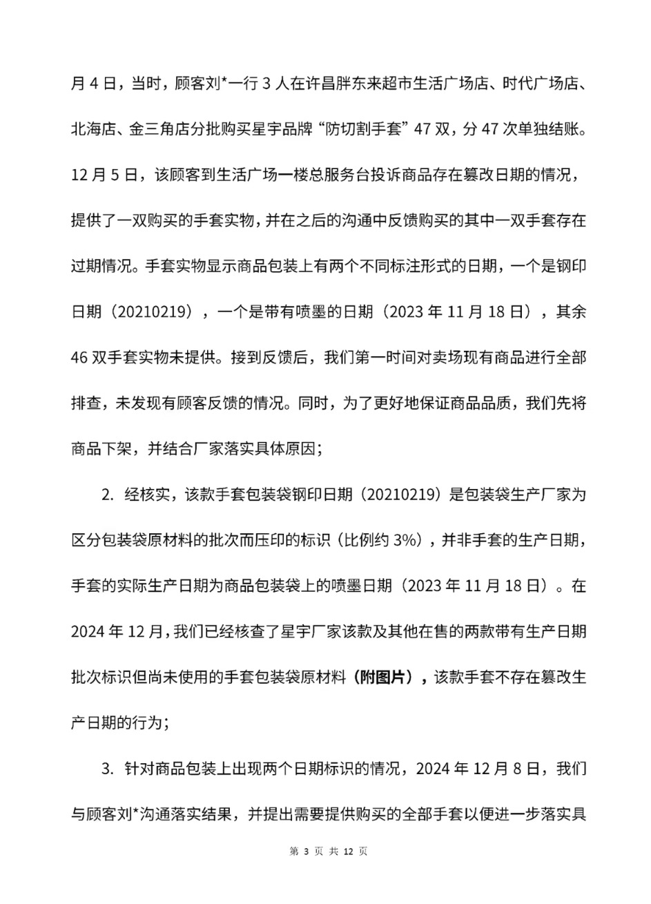 胖东来否认所售“防切割手套”篡改日期