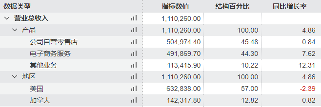 Wind数据显示,Lululemon 2025年2月3日至2026年2月1日(下称“2025财年”)的营业收入为111.03亿美元,同比增长仅4.86%,创下上市以来最低增速;净利润15.79亿美元,同比下滑12.97%。