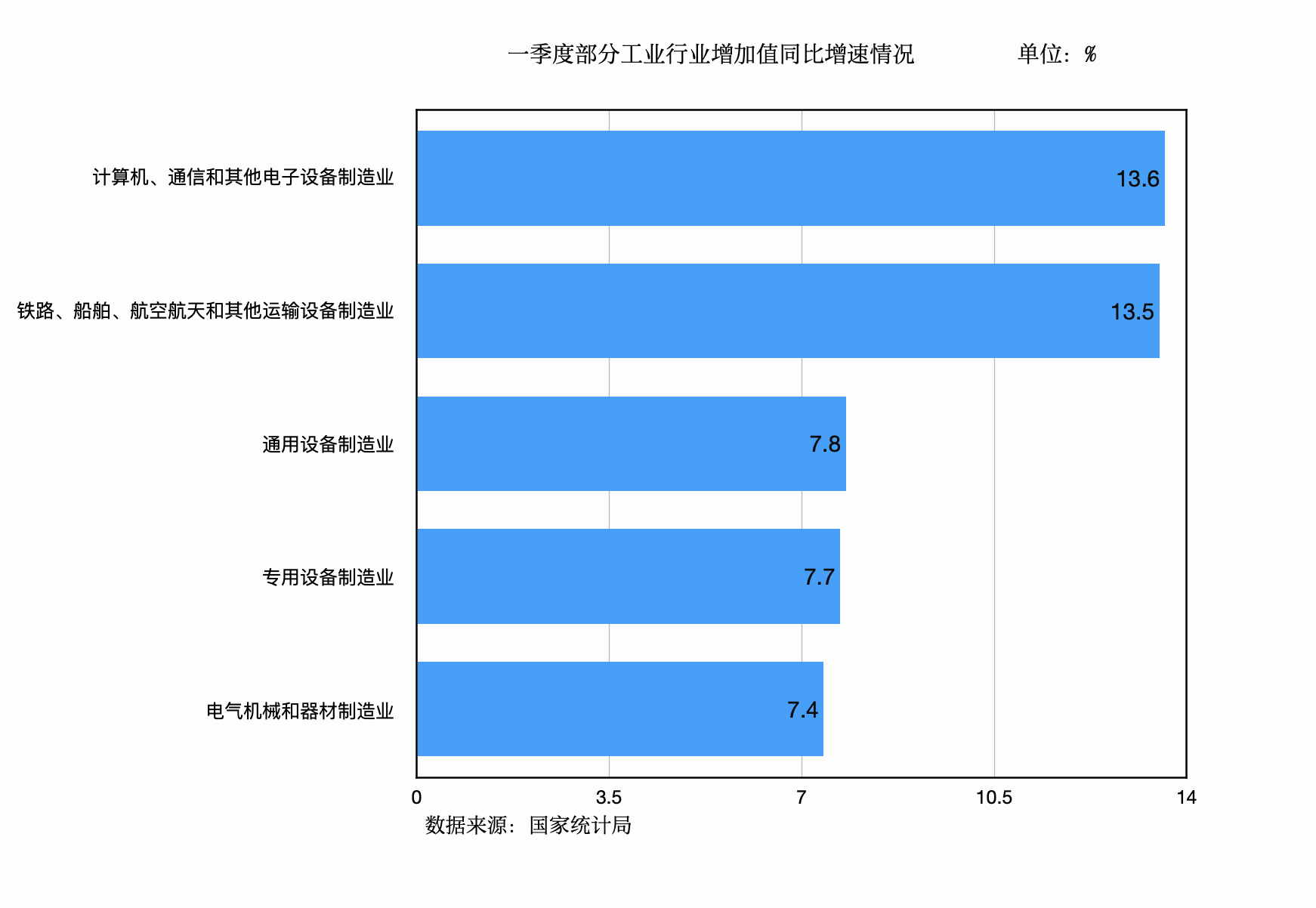 首先是高技术制造业的“领跑”效应。一季度,全国规模以上高技术制造业增加值同比增长12.5%,比规上工业增速高出6.4个百分点。具体来看,集成电路制造增长49.4%,这不仅反映了半导体国产替代的加速,也预示着全球电子产业周期正在回暖;而工业机器人产量增长33.2%、3D打印设备增长54.0%,则说明智能化改造正在从政策驱动转向企业自发的成本驱动。