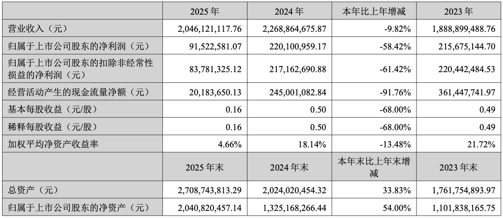 公司实现归属于母公司股东的净利润9152.26万元,同比下降58.42%,下降幅度较大,除营业收入下降外,主要系公司塑料餐饮具毛利率下降较多,以及2025年人民币汇率升值导致公司汇兑损失大幅增加等所致。
