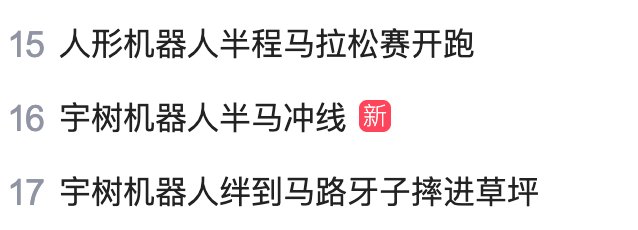 和去年首届一样,本届赛事也获得了广泛关注,超百万名网友在线观看了赛事直播。“人形机器人半程马拉松赛开跑”“宇树机器人绊到马路牙子摔进草坪”“最萌机器人拿着奶瓶跑半马”等多个话题登上百度热搜榜单。
