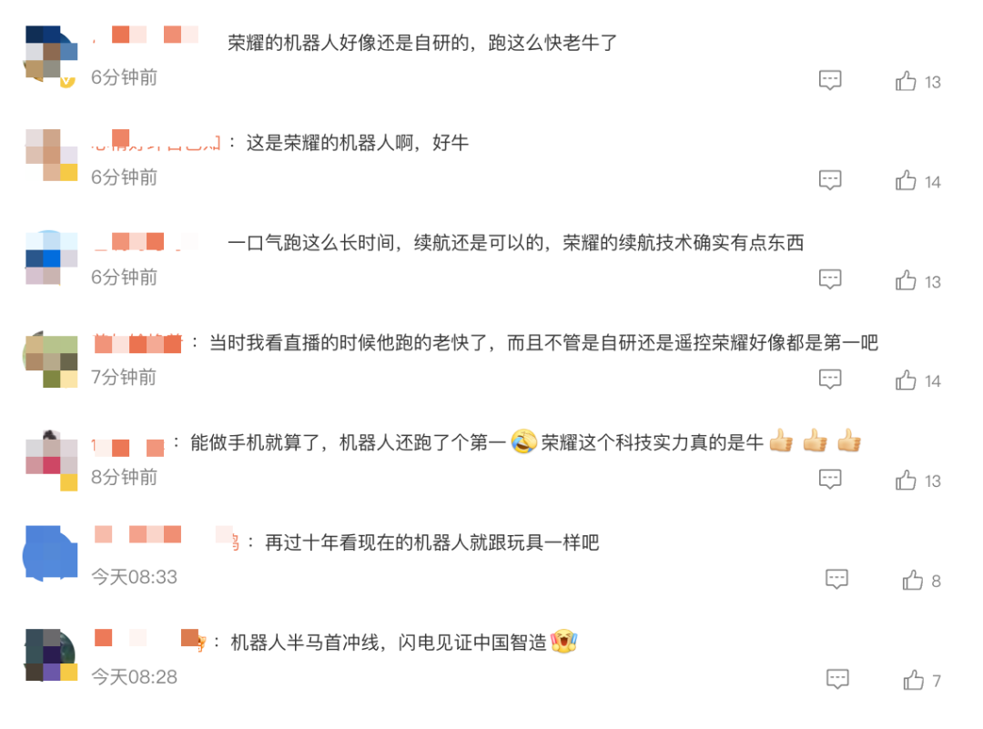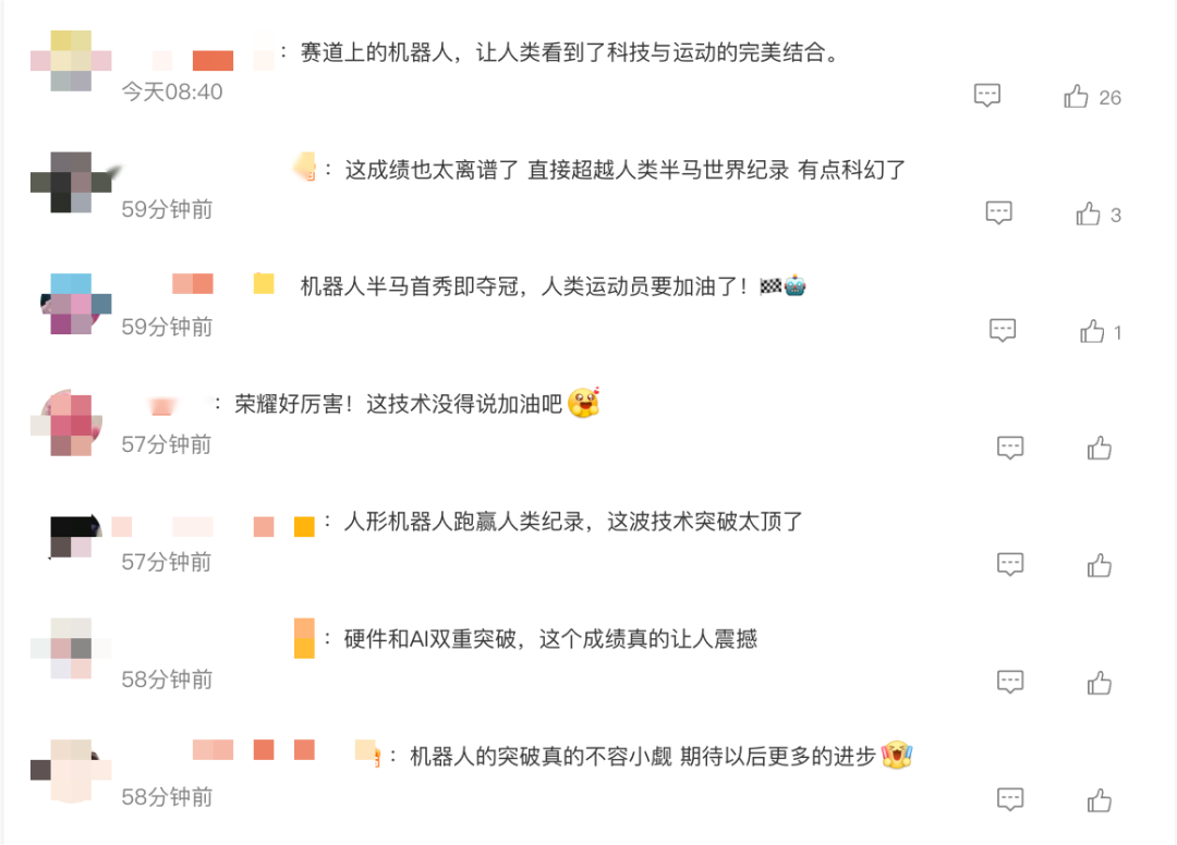 网友们纷纷表示,“赛场上的机器人,让人类看到了科技与运动的完美结合”“机器人的突破不容小觑,期待以后更多的进步”。