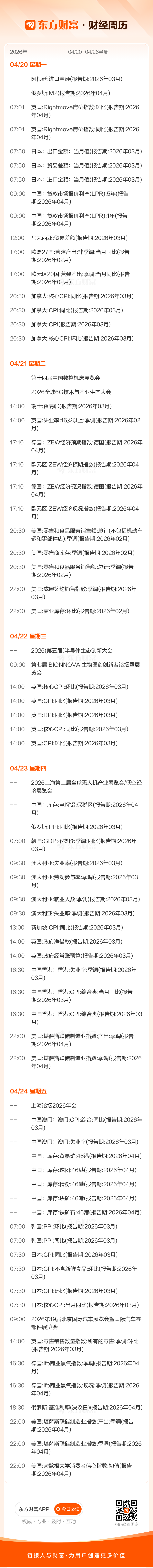下周大事件(4月20日至4月26日)