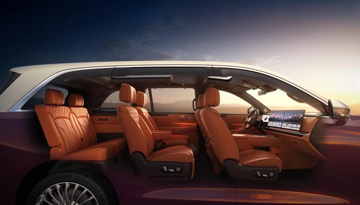 座舱采用双层环绕式布局,配备AR-HUD、液晶仪表和17.3英寸中控屏,车机搭载双高通8797芯片。车内重点仍在三排空间和舒适性配置,包括零重力座椅、后排娱乐屏、冷暖箱、音响系统以及车载制氧功能等。