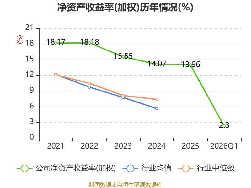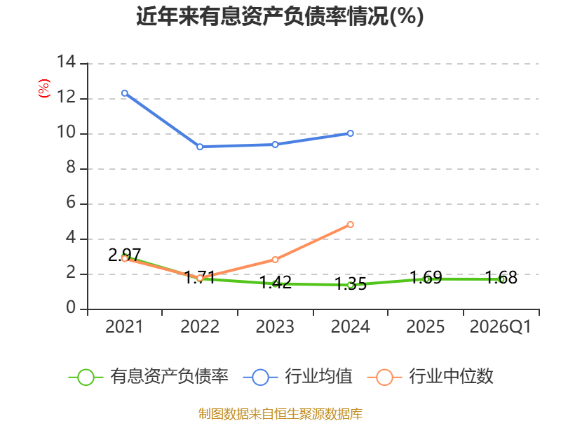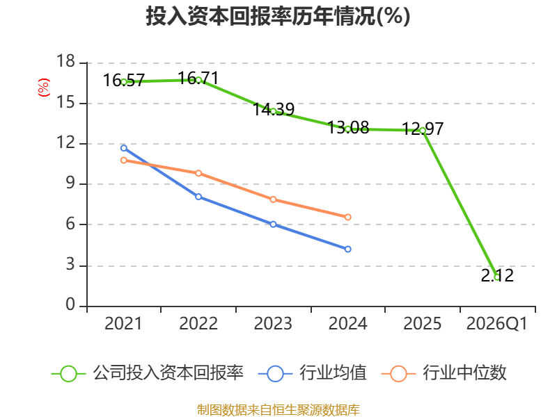 盈利能力方面, 2026年一季度公司加权平均净资产收益率为2.3%,同比上升0.35个百分点。公司2026年第一季度投入资本回报率为2.12%,较上年同期上升0.36个百分点。