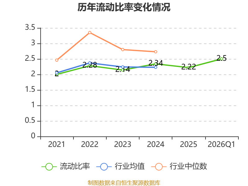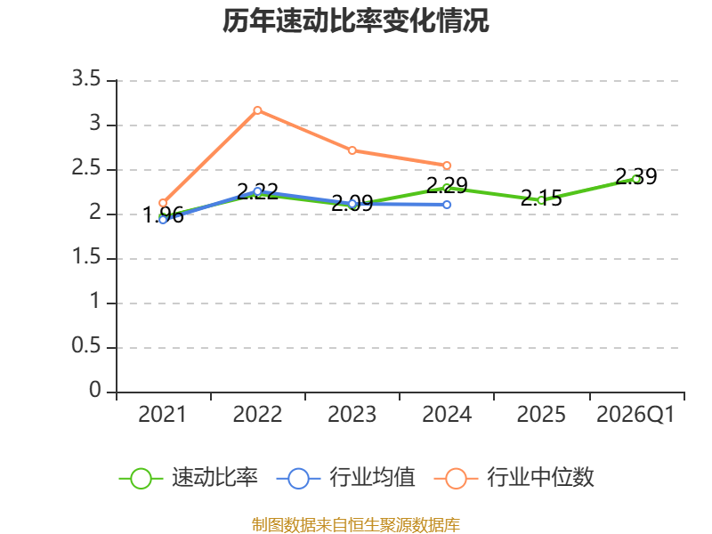 2026年第一季度,公司流动比率为2.5,速动比率为2.39。