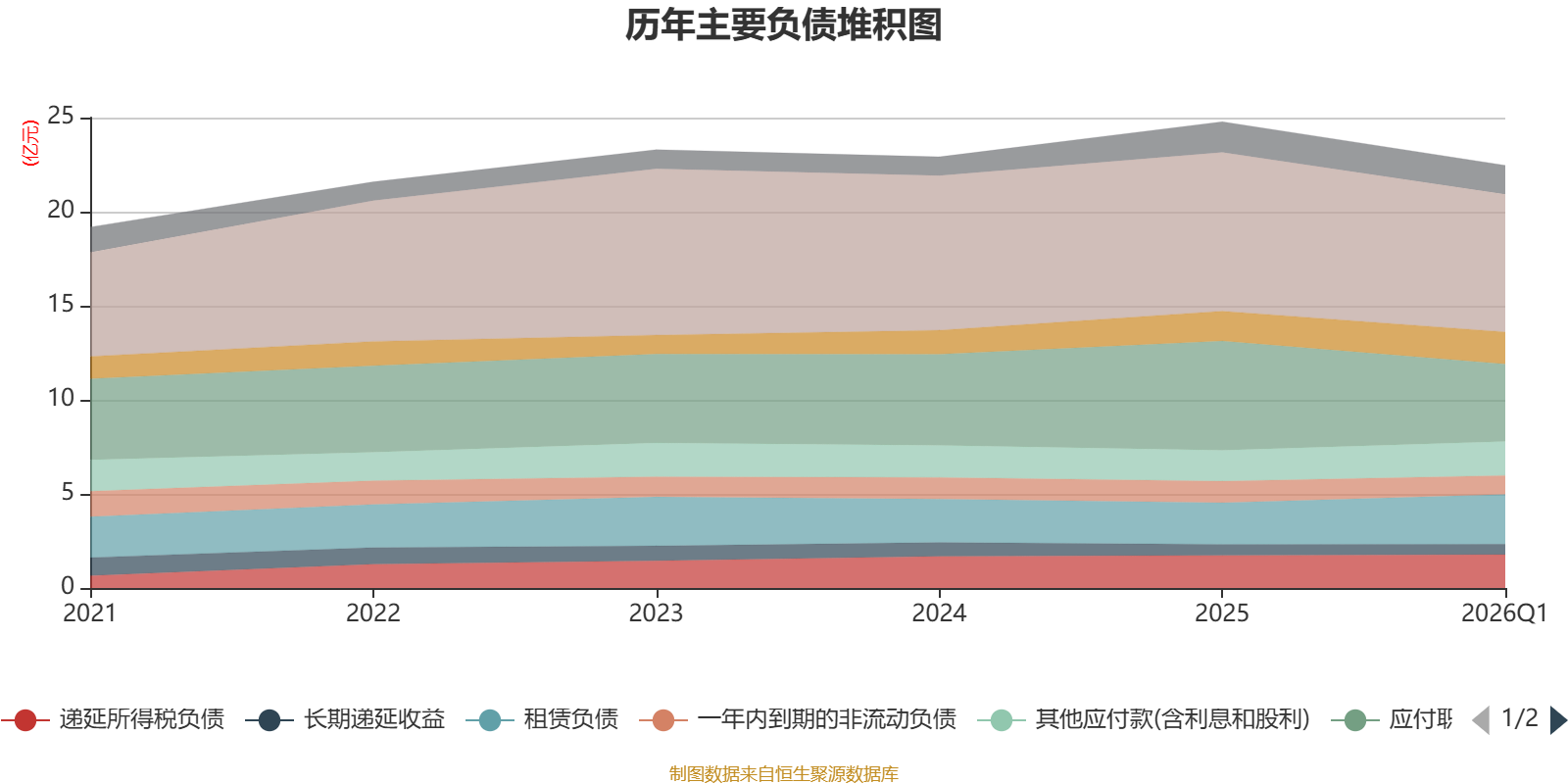 负债重大变化方面,截至2026年一季度末,公司应付职工薪酬较上年末减少29.09%,占公司总资产比重下降1.62个百分点;应付票据及应付账款较上年末减少13.21%,占公司总资产比重下降1.06个百分点;租赁负债较上年末增加19.44%,占公司总资产比重上升0.42个百分点;应交税费较上年末减少23.36%,占公司总资产比重下降0.21个百分点。