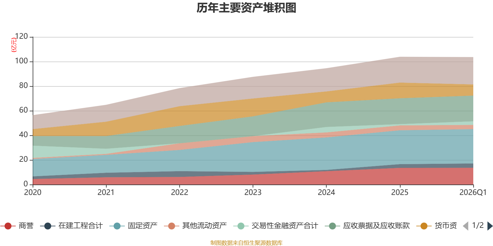 资产重大变化方面,截至2026年一季度末,公司货币资金较上年末减少29.04%,占公司总资产比重下降3.55个百分点;交易性金融资产合计较上年末增加186.58%,占公司总资产比重上升1.85个百分点;其他流动资产较上年末减少14.27%,占公司总资产比重下降0.54个百分点;存货较上年末增加41.84%,占公司总资产比重上升0.51个百分点。