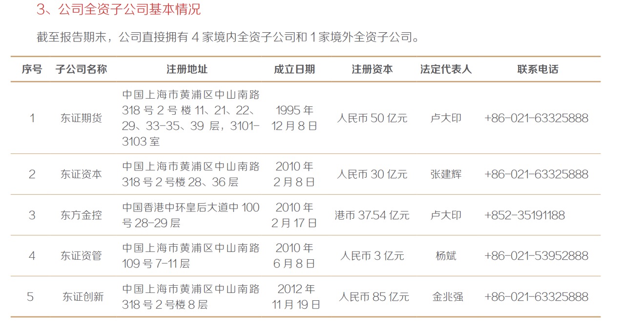 子公司方面,东方证券全资持有东证资管、东证期货、东证资本、东证创新、东方香港等子公司,并作为第一大股东参股汇添富基金。