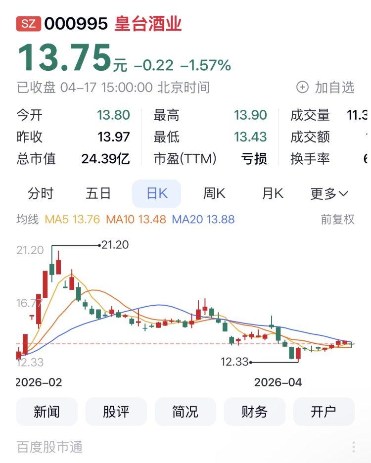 甘肃皇台酒业2025年度业绩预告显示,归属于上市公司股东(归母)的净利润1000万元~1500万元,同比下降45.85%~63.90%;扣除非经常性损益后的净利润950万元~1400万元,同比增长-10.49%~31.91%;基本每股收益0.06元/股~0.08元/股。