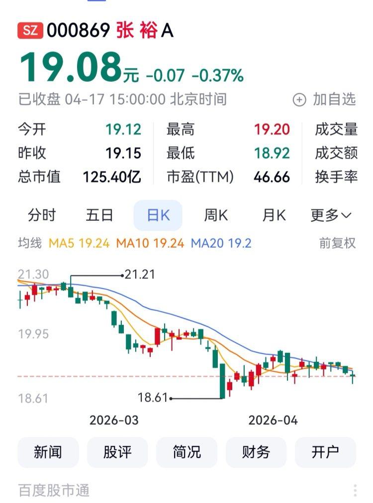 张裕A报收19.08元,以-0.88%的周涨幅列葡萄酒股周涨幅末位。
