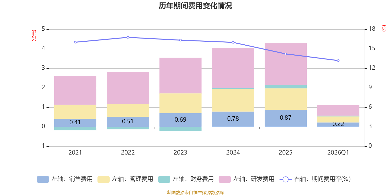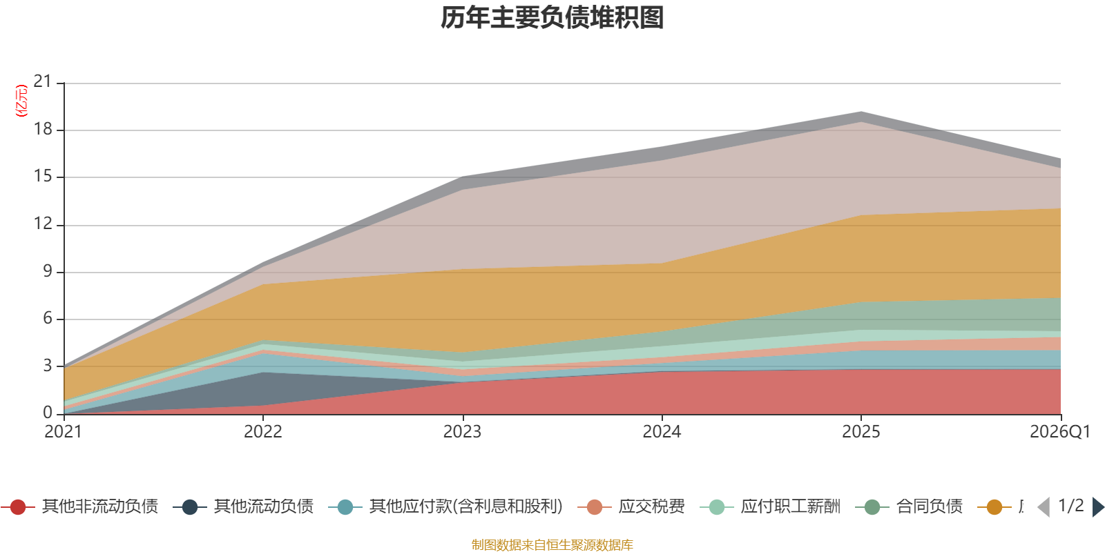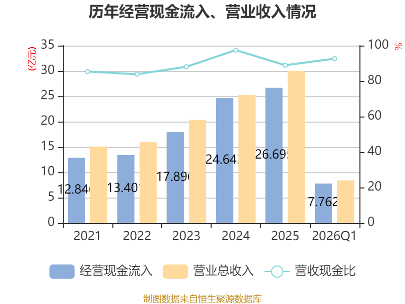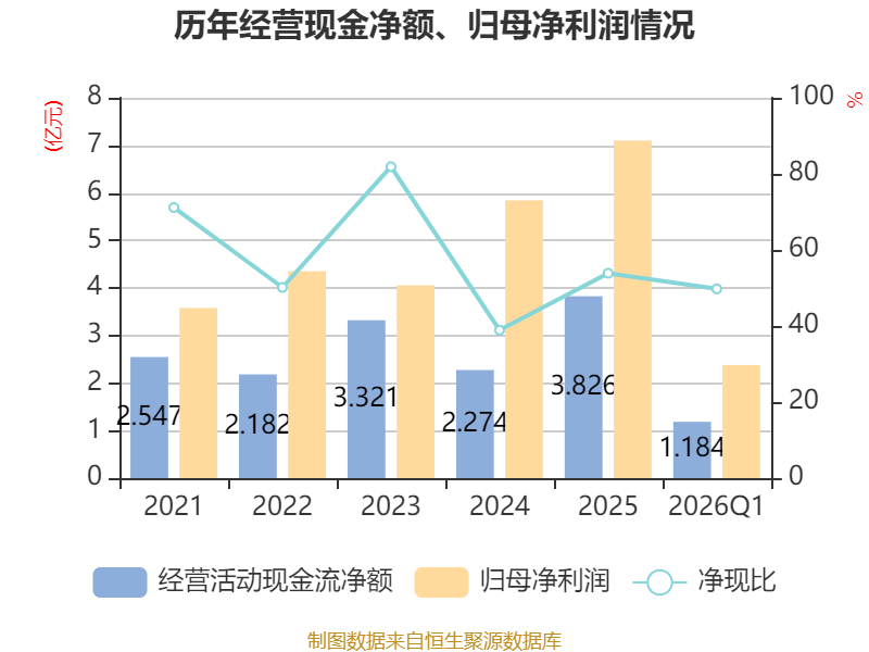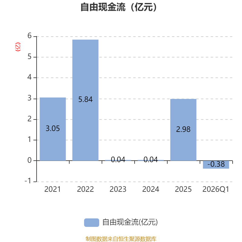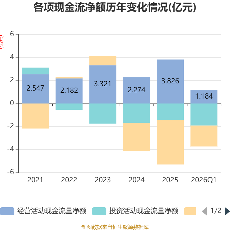 截至2026年一季度末,公司经营活动现金流净额为1.18亿元,同比增长1641.6%;筹资活动现金流净额-1.82亿元,同比减少1.77亿元;投资活动现金流净额-1.92亿元,上年同期为-1.08亿元。