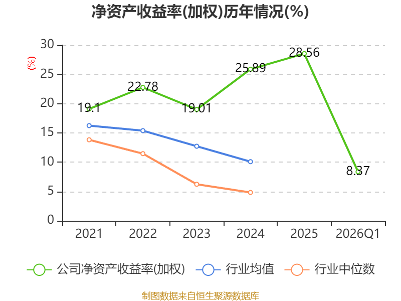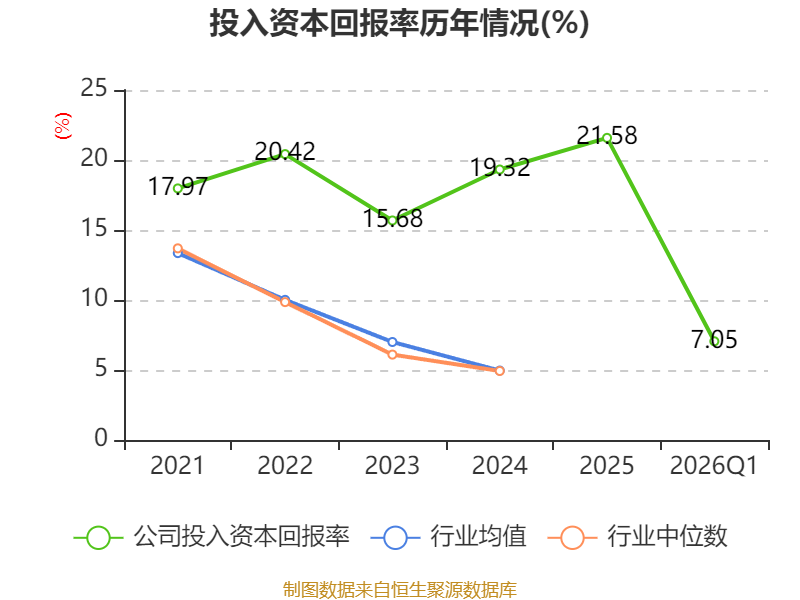 盈利能力方面, 2026年一季度公司加权平均净资产收益率为8.37%,同比上升1.56个百分点。公司2026年第一季度投入资本回报率为7.05%,较上年同期上升1.86个百分点。