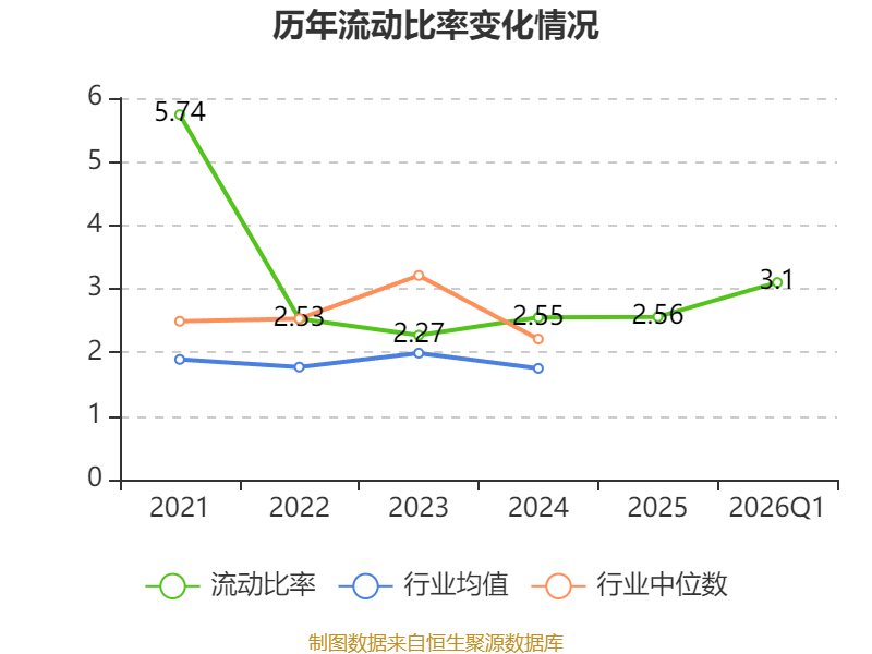 2026年第一季度,公司流动比率为3.1,速动比率为2.56。
