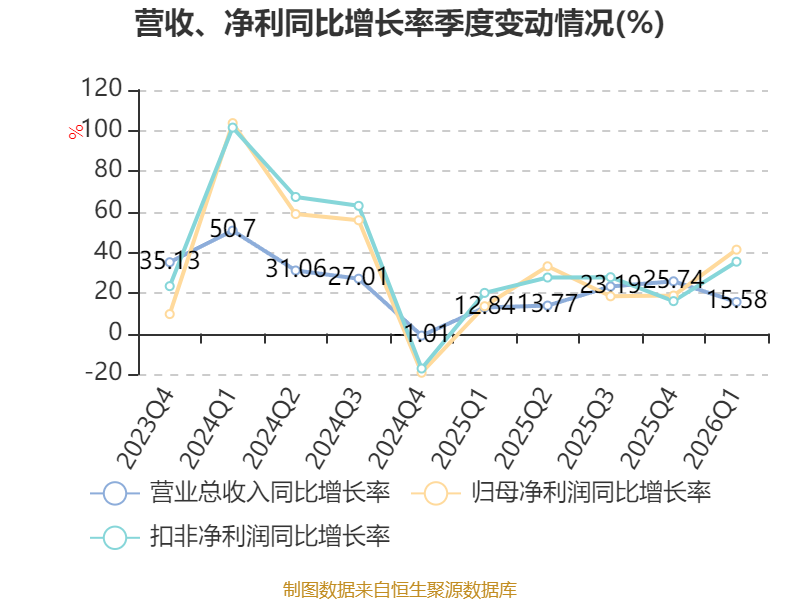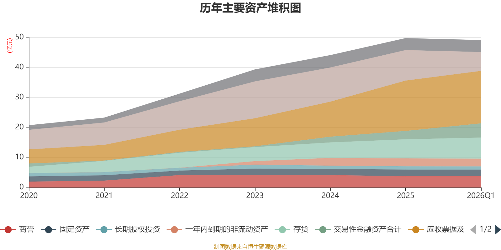 资产重大变化方面,截至2026年一季度末,公司货币资金较上年末减少38.05%,占公司总资产比重下降7.6个百分点;交易性金融资产合计较上年末增加70.13%,占公司总资产比重上升4.05个百分点;应收票据及应收账款较上年末增加4.21%,占公司总资产比重上升1.9个百分点;存货较上年末增加10.37%,占公司总资产比重上升1.52个百分点。