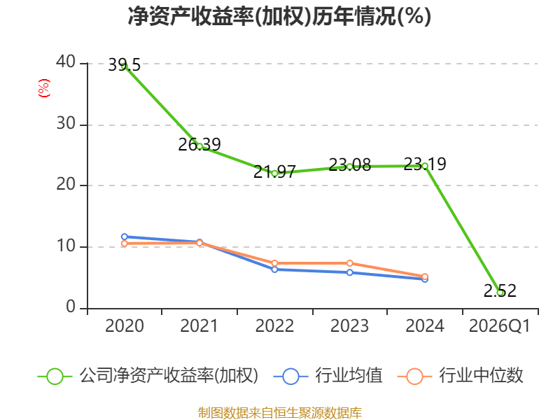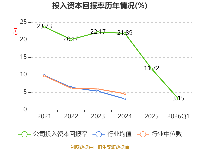 盈利能力方面, 2026年一季度公司加权平均净资产收益率为2.52%,同比下降3.33个百分点。公司2026年第一季度投入资本回报率为3.15%,较上年同期下降2.56个百分点。