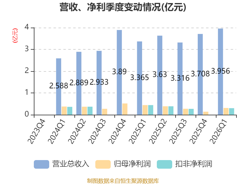 中证智能财讯华之杰(603400)4月20日披露2026年第一季度报告。公司实现营业总收入3.96亿元,同比增长17.54%;归母净利润3114.28万元,同比下降29.72%;扣非净利润3012.4万元,同比下降31.81%;经营活动产生的现金流量净额为4901.86万元,同比下降27.03%;报告期内,华之杰基本每股收益为0.31元,加权平均净资产收益率为2.52%。