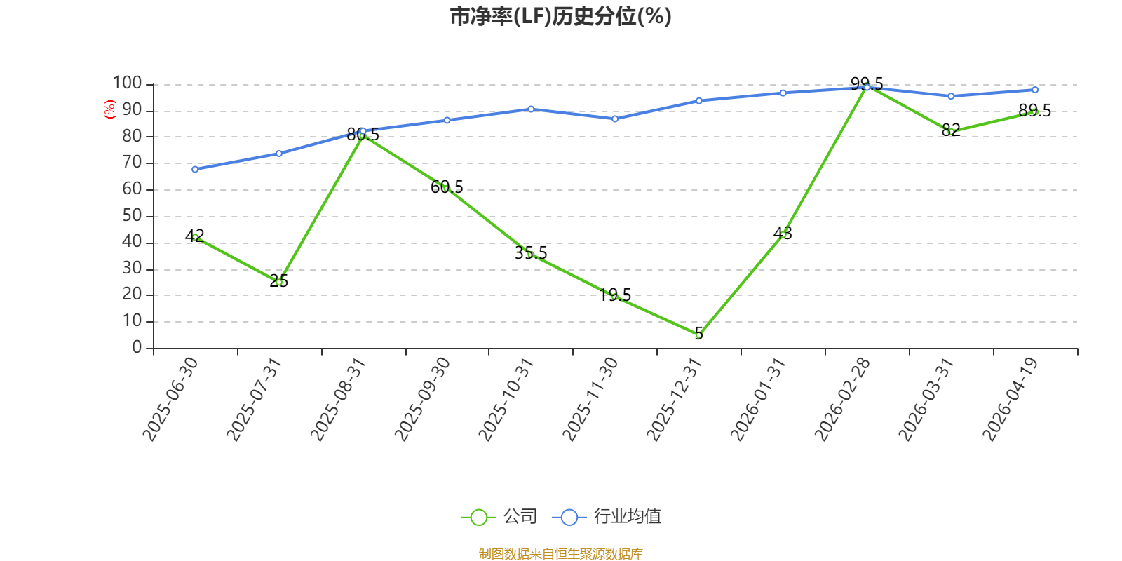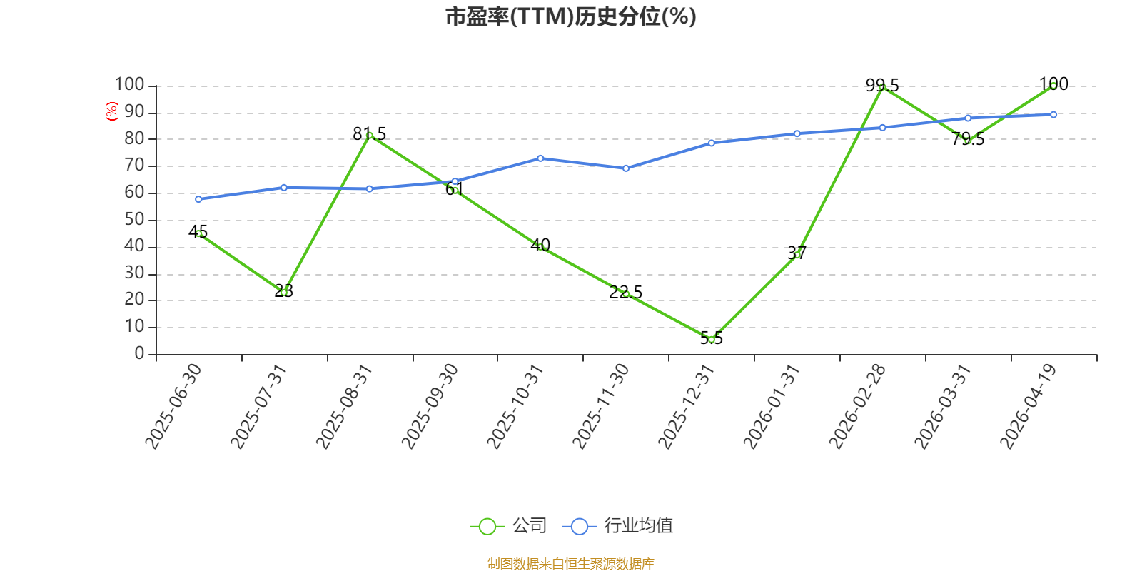市盈率、市净率为负时,不显示当期分位数,会导致折线图中断。