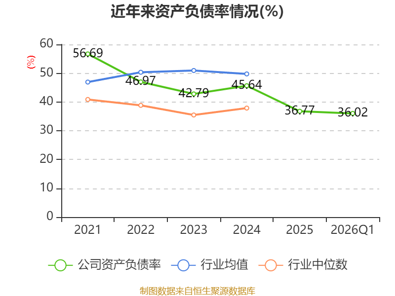 负债重大变化方面,截至2026年一季度末,公司其他应付款(含利息和股利)较上年末减少93.59%,占公司总资产比重下降3.05个百分点;应付票据及应付账款较上年末增加8.45%,占公司总资产比重上升2.29个百分点;长期借款占公司总资产的1.32%,上年末为0;应付职工薪酬较上年末减少52.7%,占公司总资产比重下降0.73个百分点。